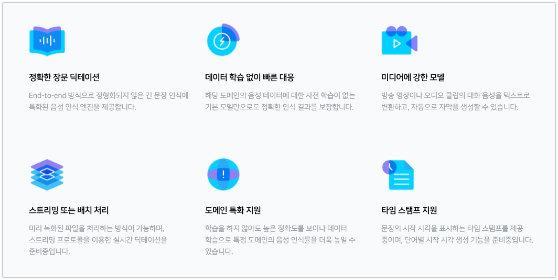 음향 정보와 언어 정보를 별도로 학습하는 기존의 모델링 방식을 통합 모델링 방식(end-to-end)으로 개선해, 학습에 필요한 데이터의 양과 시간은 기존의 1/10 수준으로 단축시키면서도, 인식의 정확도는 오히려 높였다.
