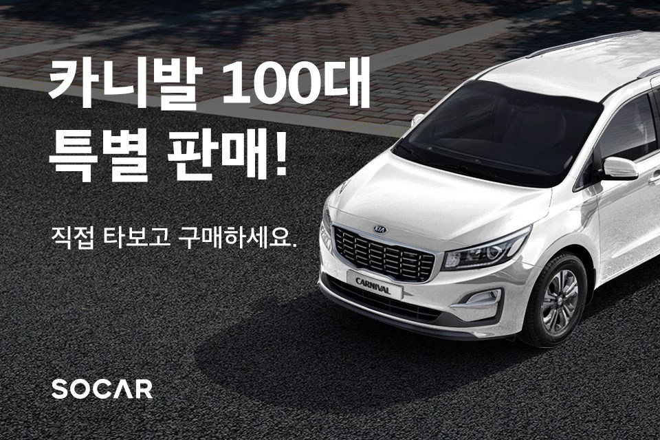 쏘카는 오늘 오후 2시부터 쏘카 회원들을 대상으로 중고 카니발 100대를 판매한다. 이번 특별 판매는 오는 9월 7일까지 약 3개월 동안 쏘카앱에서 진행된다.