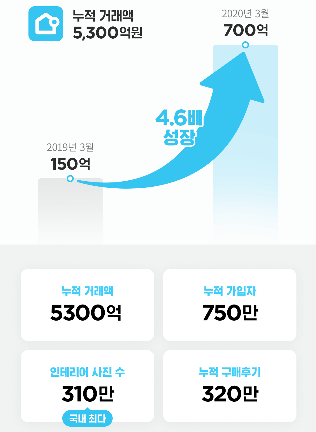 - 오늘의집, 월 거래액 300억원 돌파.. 올해 3,000억원 넘겨 작년 대비 3배 성장 예상