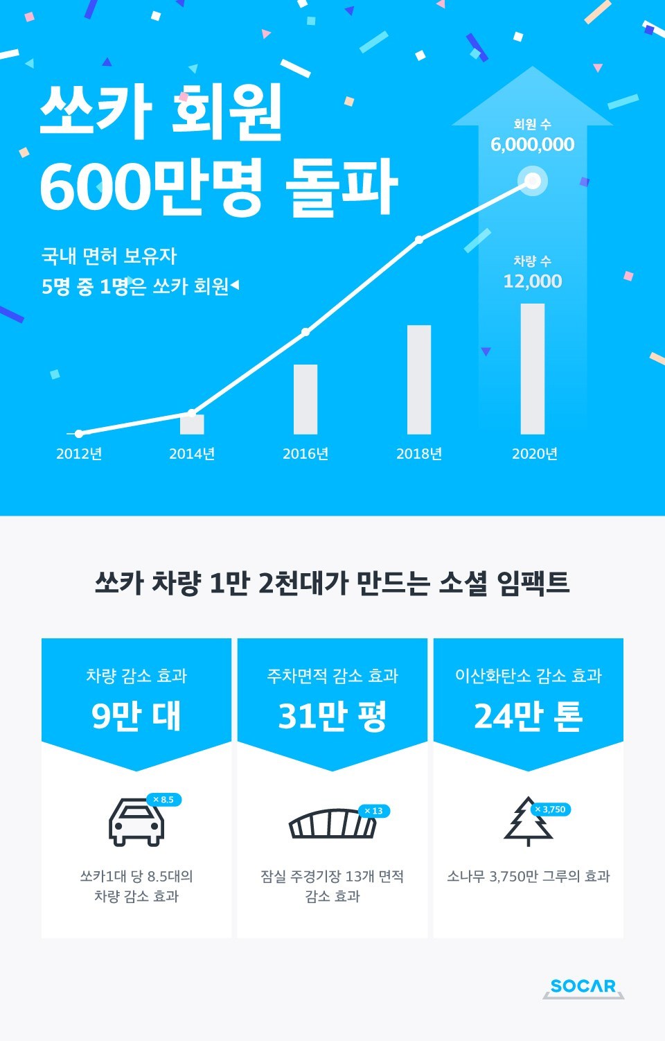 쏘카, 회원 600만명 돌파.. 지구 3만바퀴 돌아