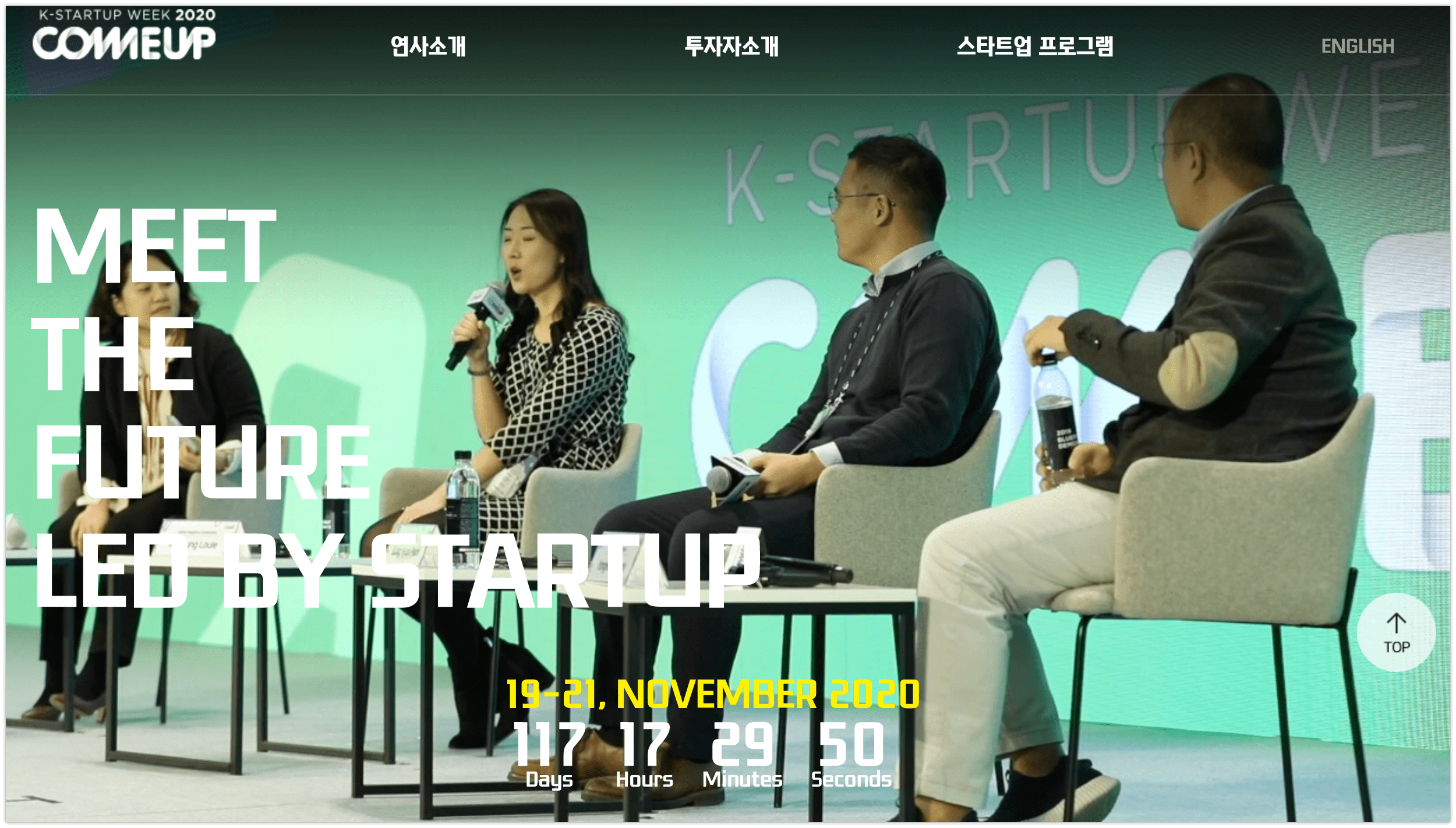 ‘컴업(COMEUP) 2020’은 국내 최고의 권위와 최대 규모를 자랑하는 혁신 벤처와 스타트업을 위한 글로벌 스타트업 축제로 오는 11월에 개최될 계획이다.